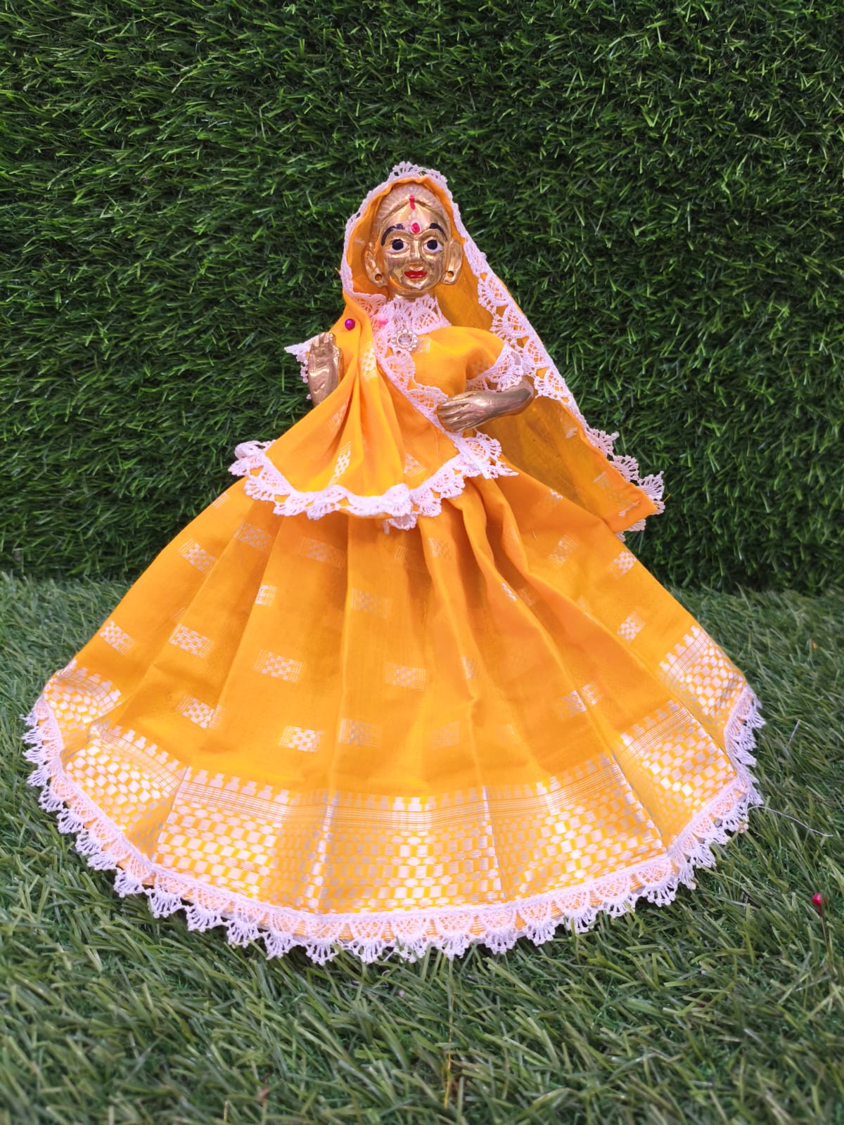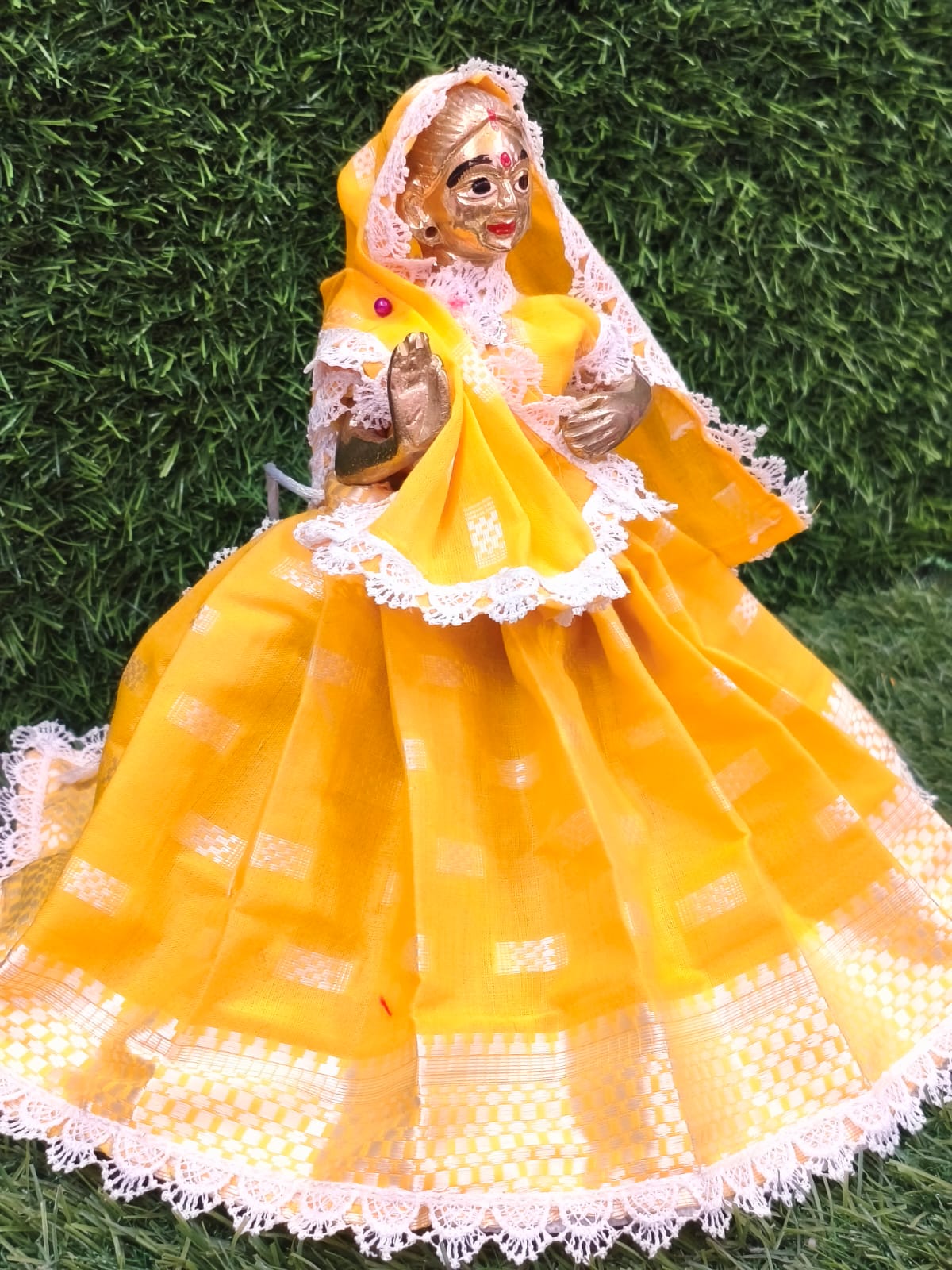 discover the exquisite world of radharani dress,also known as/laxmi/saraswati/matarani dress these finely-crafted poshaaks (attires)are not only a celebration of tradition but also a reflection of to your devotion.available in various sizes from idol size 7″to 24″.dresses are well designed,soft,washable,colour guarantee.Â